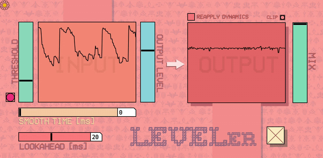 Utilizes a combination of upward and downward volume compensation to ensure any audio above the input threshold stays at the specified output level.